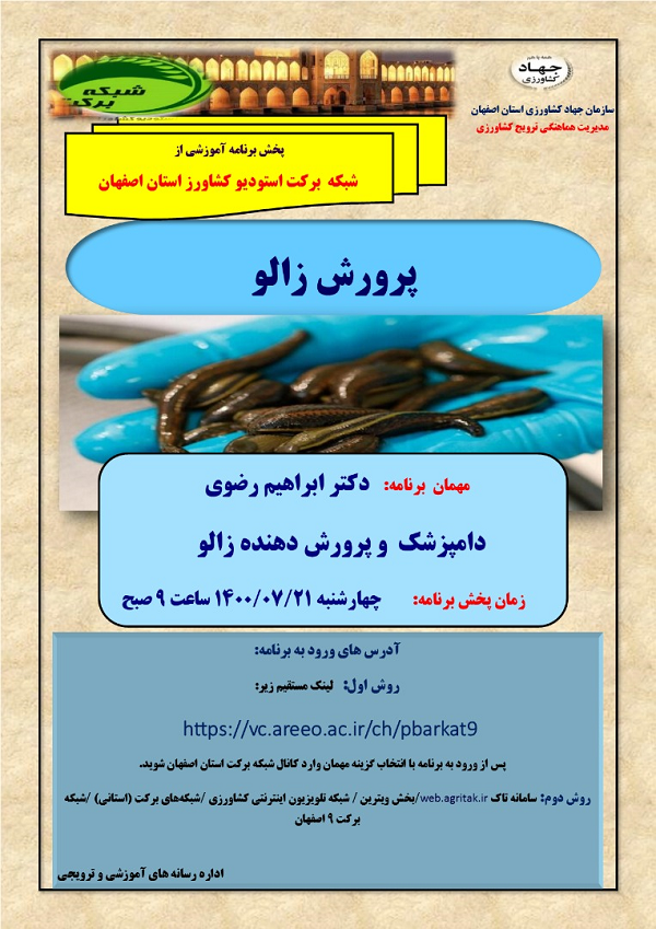 عنوان برنامه: پرورش زالو چهارشنبه 21 مهر ماه 1400 ساعت پخش 9 صبح از استودیو کشاورز استان اصفهان