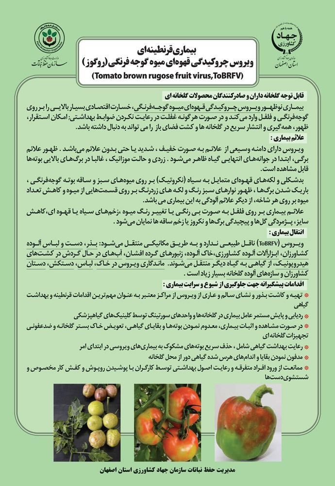 اطلاعیه بیماری قرنطینه ای ویروس چروکیدگی قهوه ای میوه گوجه فرنگی