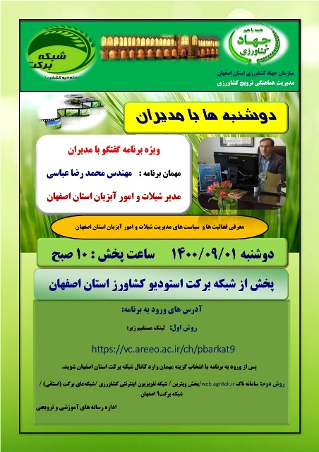 دوشنبه ها با مدیران از شبکه برکت استودیو کشاورز - یکشنبه 16آبان ماه 1400