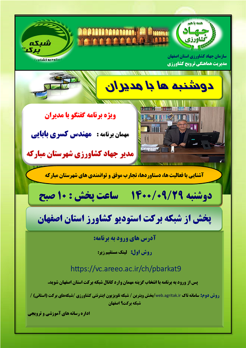 اطلاعیه پخش برنامه آموزشی شبکه برکت استودیو کشاورز - دوشنبه 17 آبان ماه 1400